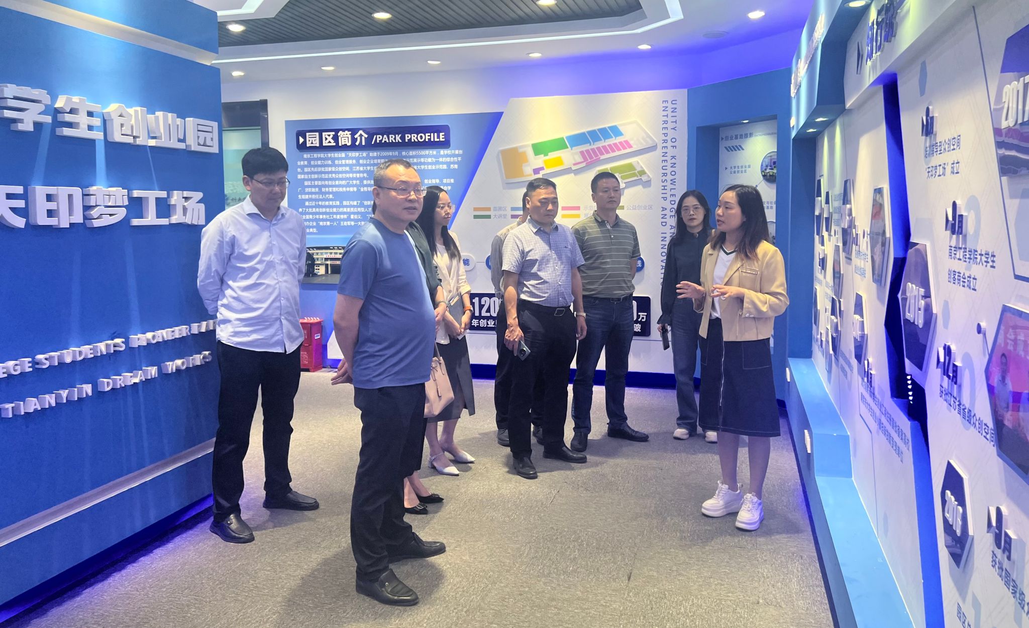 建筑工程学院相关负责人参加会议。会前,汪俊齐一行参观了大学生创业园“天印梦工场”。
