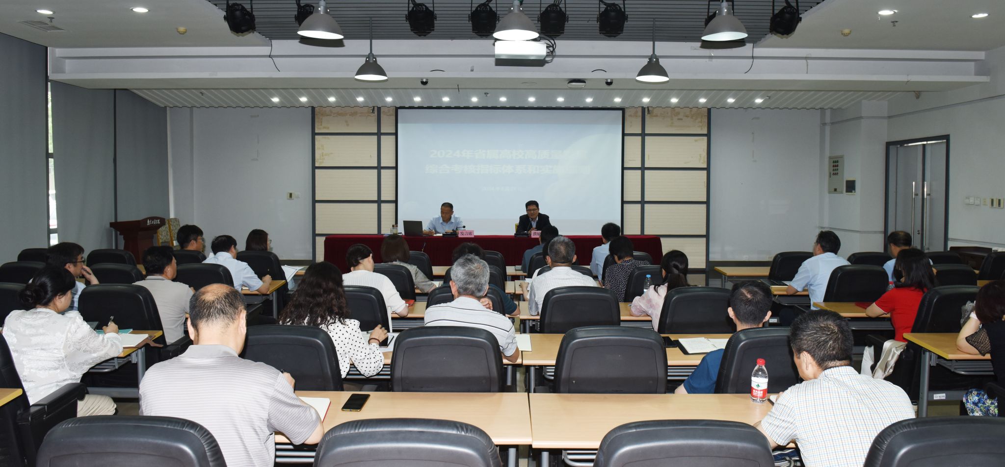 会议通报了2023年度学校综合考核情况,聂邦军围绕高质量发展绩效评价考核指标体系、党的建设成效评价考核指标体系、办学治校满意度评价实施细则等三个方面,就2024年省属高校高质量发展综合考核指标体系和实施细则的变化情况进行了详细解读。发展规划处负责人从2023年度高质量考核总体情况分析、2024年度高质量考核指标体系解读和下阶段工作要点等方面进行补充说明。