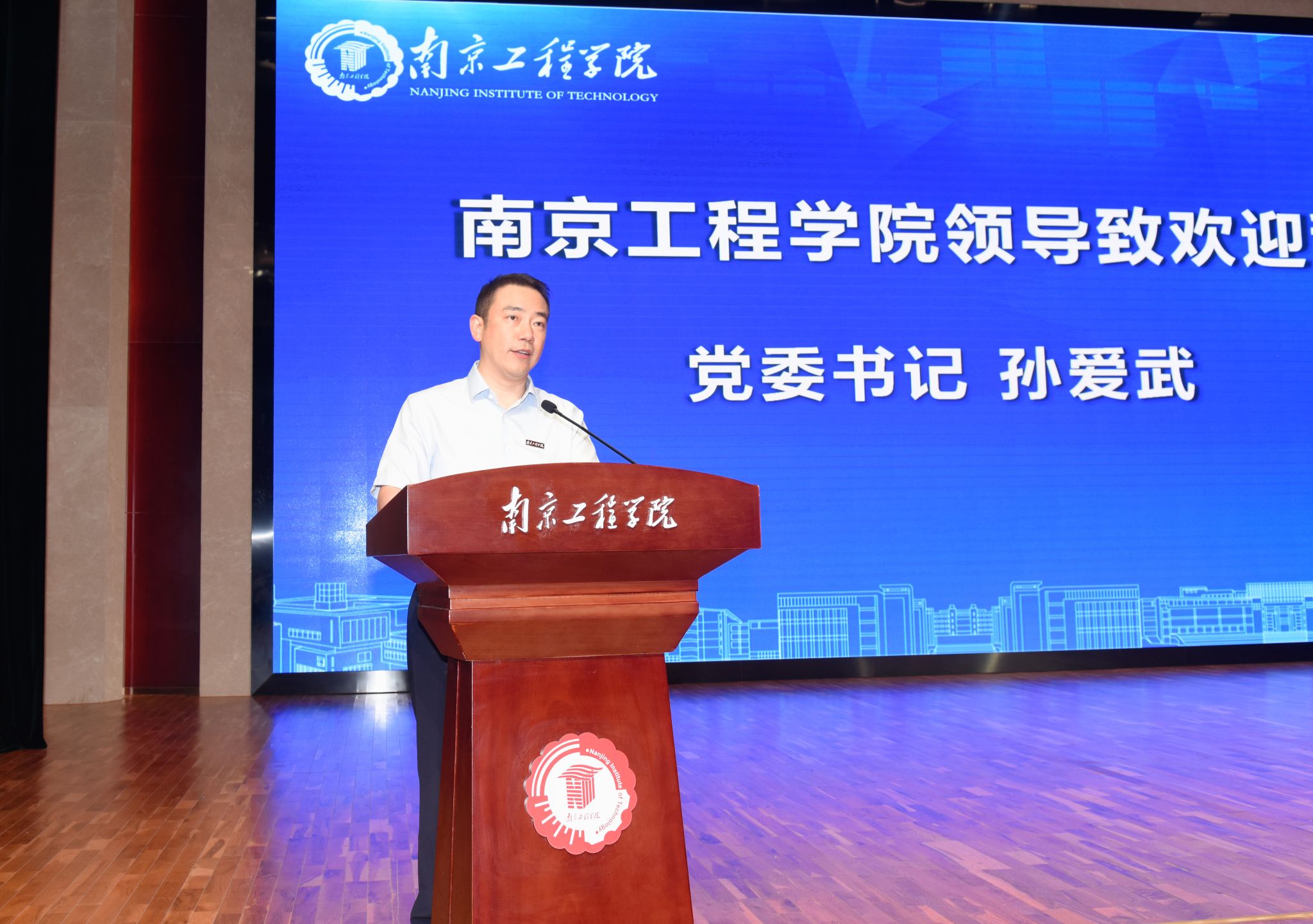 孙爱武在致辞中代表学校向出席会议的各位领导、嘉宾表示热烈欢迎,向关心支持学校事业发展的各位同仁表示衷心感谢。他指出,推动本科高校向应用型转变,是党中央、国务院重大决策部署,是教育领域人才供给侧结构性改革的重要内容。此次南工程成功入选我省首批一流应用型本科高校建设高校,既是对学校人才培养与办学水平的高度肯定,也是学校快速发展的重大契机。学校将立足新发展阶段,努力发挥首批建设高校的示范带动作用,全力打造全国应用型创新人才培养的“主阵地”、行业产业科技创新的“策源地”、区域经济社会发展的“赋能地”、中华民族现代文明的“传承地”、对外交流交往的“新高地”,为江苏在高质量发展继续走在前列提供强有力支撑。