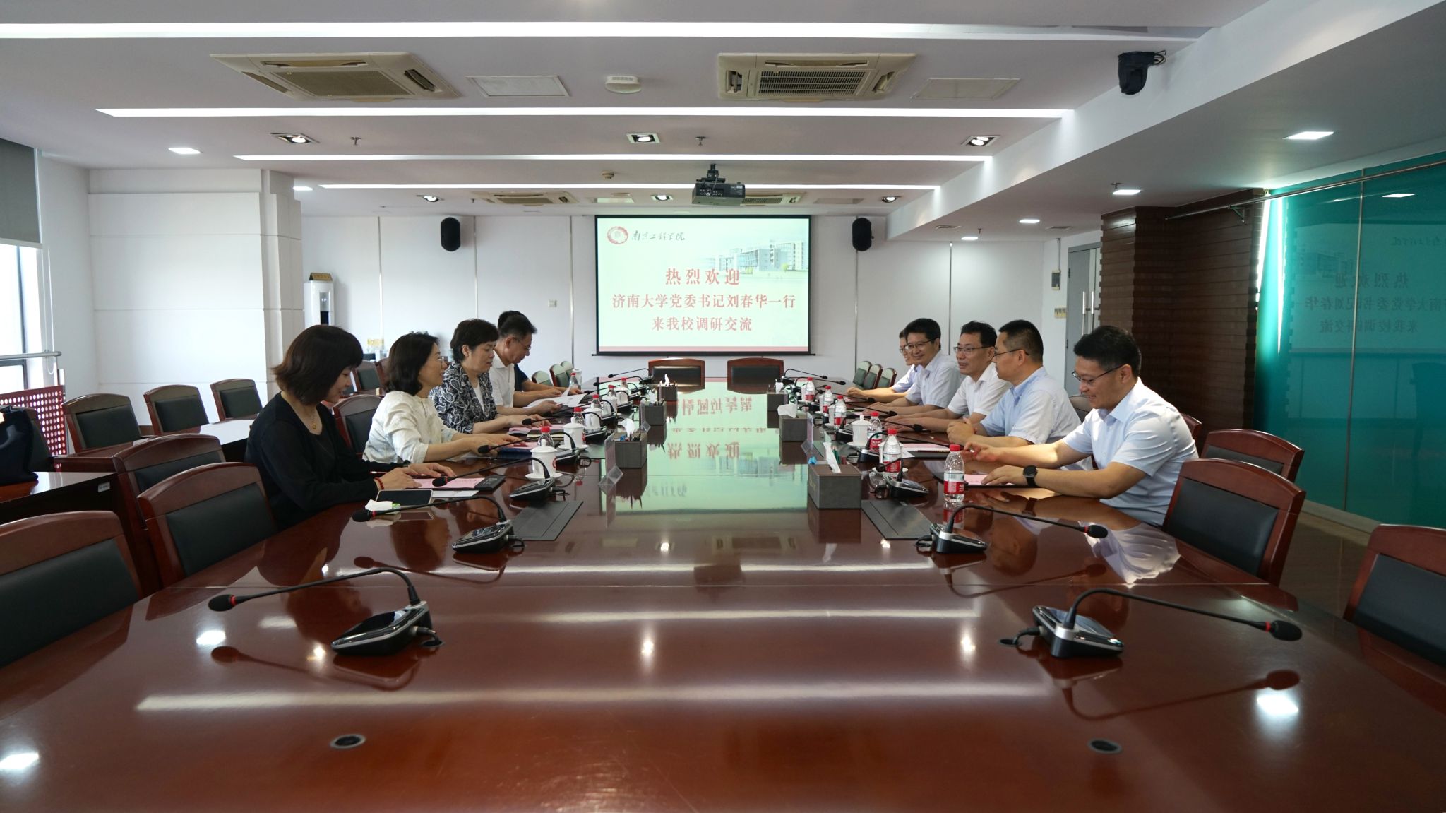 7月23日下午,济南大学党委书记刘春华,副校长陈月辉,党委常委、副校长王霞一行来校调研交流。永利官网党委副书记、校长张仰飞在至勤楼·行政中心北楼303会议室热情接待了来宾。党委常委、副校长陆华良、朱松青参加座谈会。