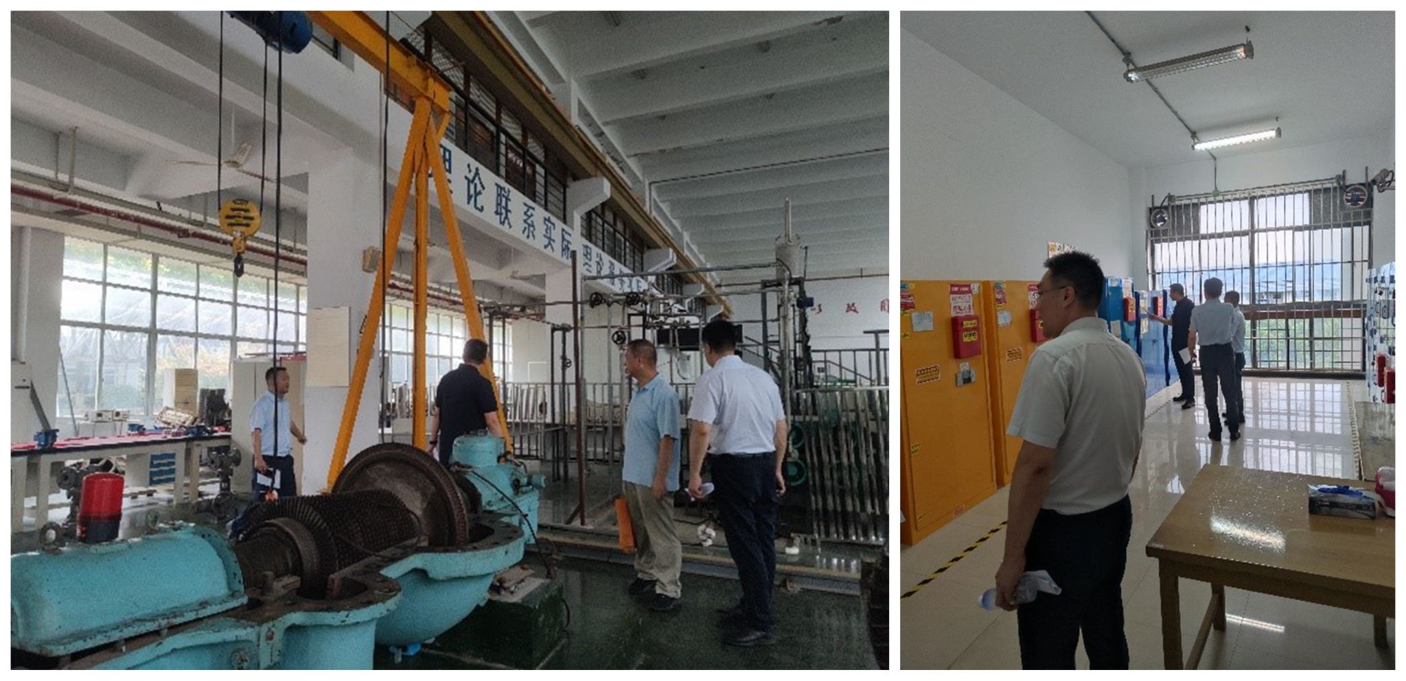 现场检查组专家抽查了机械工程学院、材料科学与工程学院、能源与动力工程学院、建筑工程学院、环境工程学院、工业中心以及学校危化品仓库等,查阅了相关台账资料。现场调研组专家还召开了实验室安全工作座谈会,从队伍建设、制度建设、经费保障、培训教育、危化品管理等方面与教师进行交流。