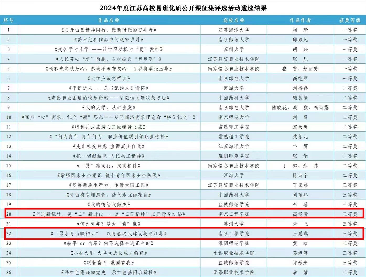 近日,江苏高校易班发展中心组织了2024年度江苏高校易班优质公开课评审工作,经过专家评审团评审,评选出江苏高校易班优质公开课一等奖6项、二等奖10项、三等奖10项。永利官网建筑工程学院高杨昕老师、奥卢学院王思琪老师报送的作品均获三等奖。