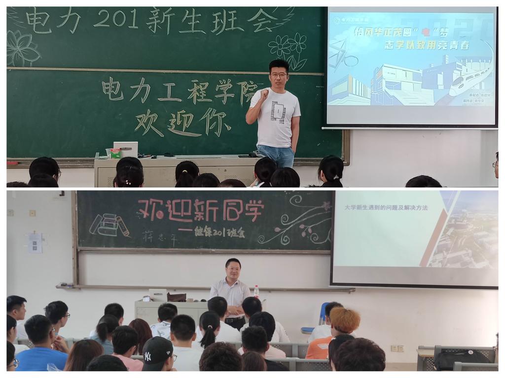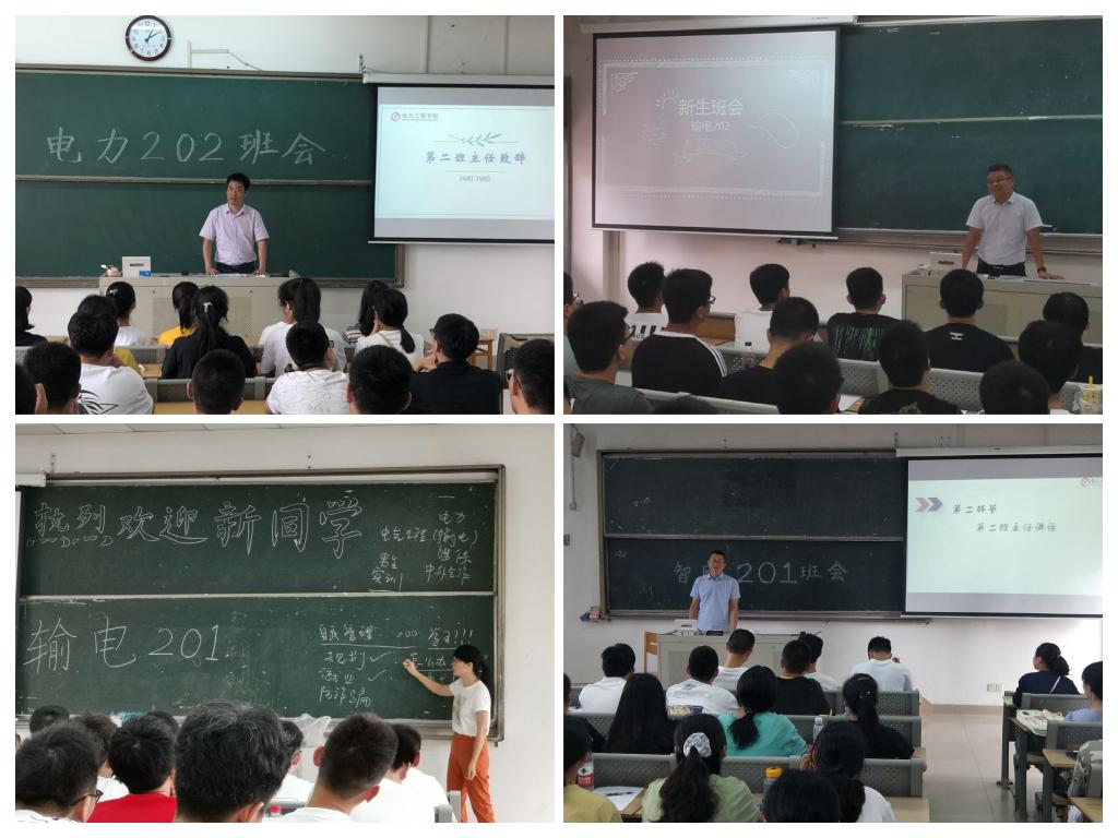在对新生思想的教育上,继保202班第二班主任、校党委常委、副院长张仰飞老师在听取班级同学自我介绍后,建议同学们要把握机会,多交流、多学习、多积累,利用好身边的优秀资源,拥有自己的爱好,珍惜宝贵的大学时光。“勇于接受,敢于尝试”是电力201班第二班主任、电力工程学院院长郝思鹏老师在新生班会上所强调的优秀品质,他希望每一位同学都能对新事物不抵触,始终保持着一颗童心,一颗好奇的心,积极主动地去探索自己的大学生活。继保201班第二班主任、学工处副处长于跃进老师希望同学们明白,大学就是一个新的开始,要能吃苦,对自己负责,要在大学四年的学习生活中培养个人的意志力和决策力。平衡好学习、生活、运动和休闲的关系。